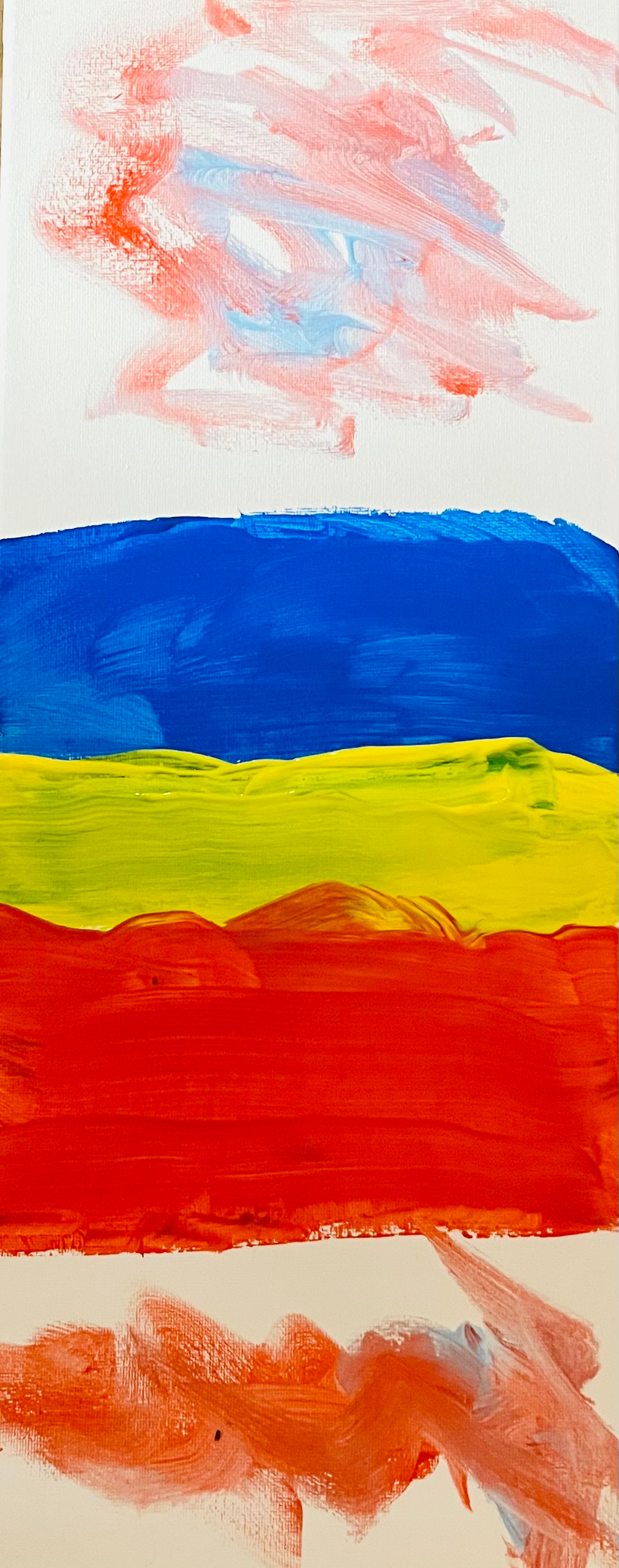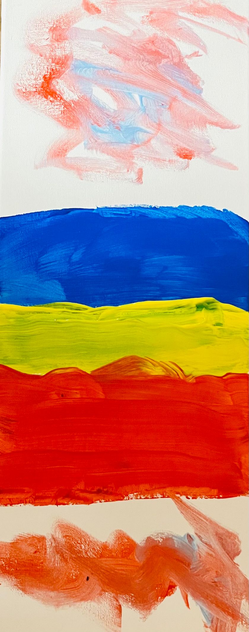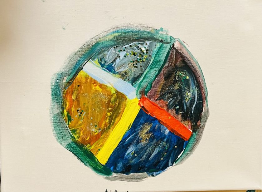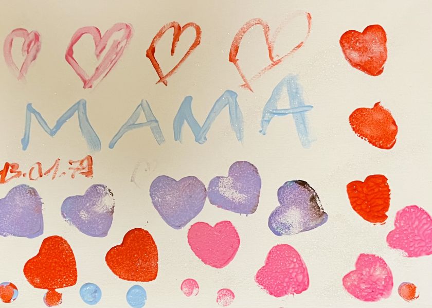 Es wurde mit Farben experimentiert! Was mache ich, wenn die Farbe Lila fehlt? So entstanden tolle Winterlandschaften, Geburtstagsgeschenke für die Mama, Flaggen und andere tolle Kunstwerke. Wir sprachen über unsere Familien, wieviel Geschwister wir alle haben, wie sie heißen und vieles mehr. Unterstützt wurde die Kunstaktion von der Q8 Koordinatorin in Großlohe, Kathi Wegener, die sich auch selbst kreativ beteiligte.