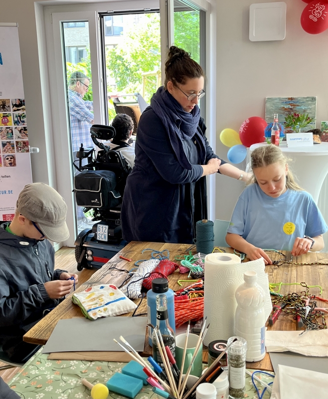 Es war ein toller kreativer Tag. Mit vielen Gästen konnten wir schöne Turnbeutel entwerfen. Von den Kindern haben wir gelernt, wie man Makramee Schlüsselanhänger fertigt. Es wurden Waffeln gebacken und der Grill lief auf Hochtouren.