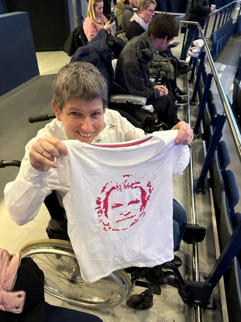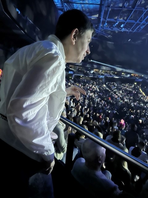 Wir hatten Rollstuhlplätze, da konnte man gut sehen. Ich habe getanzt. Wir saßen an einem Geländer, da konnte ich mich festhalten, aus dem Rollstuhl aufstehen und Tanzen.